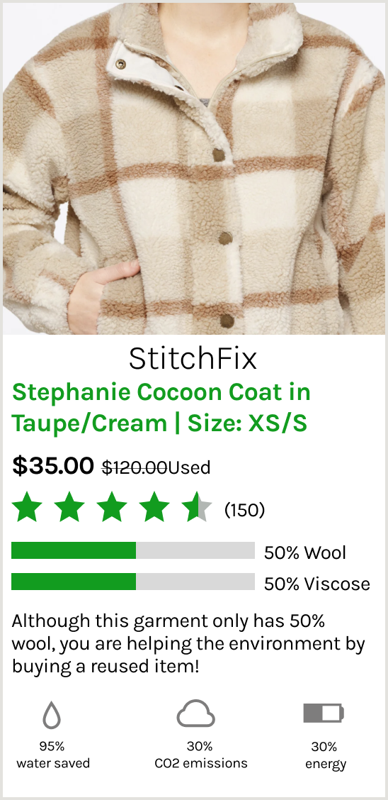 With the use of data, the sustainability plug-in is able to detect the price range you're looking for, and also the style, SKU, and description of the items you're shopping for online. This then informs the user of sustainable counterparts that are less wasteful and provides coupons through brand partnerships for those that fulfill their eco-friendly purchase.